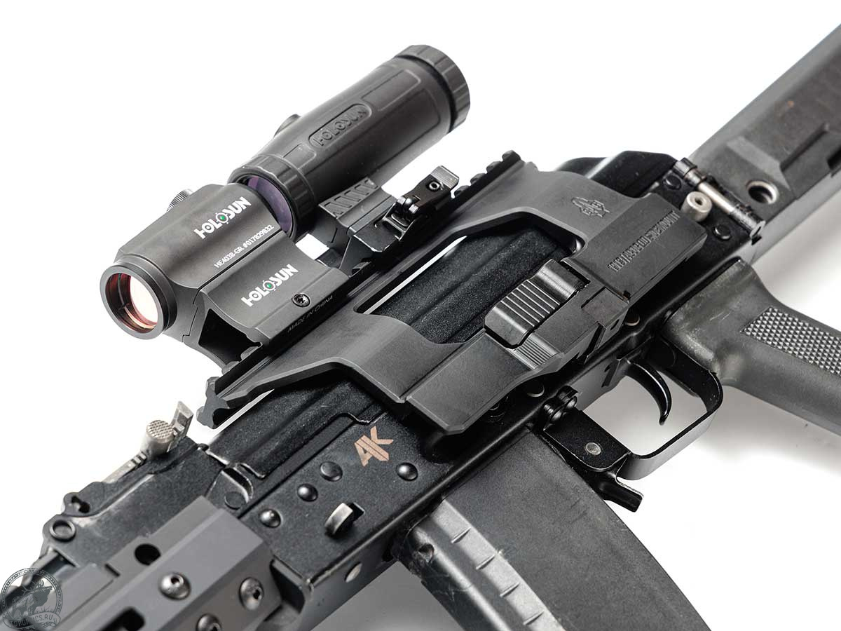 Кронштейн предназначен для установки оптических и коллиматорных прицелов на любую боковую планку САЙГА/АК/ВЕПРЬ (с проточкой или без) и только для использования с крышкой ствольной коробки БЕЗ планки пикатинни.