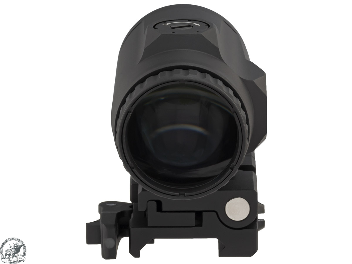 Увеличитель монтируется на стандартную планку Picatinny при помощи быстросъёмного кронштейна, входящего в комплект. Механизм откидывания в сторону даёт возможность мгновенно переключаться между режимами с увеличением и без него. Это обеспечивает максимальную гибкость и оперативность при выполнении стрелковых задач.