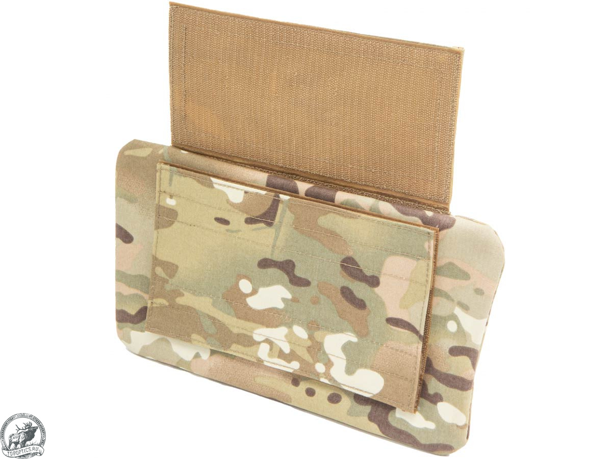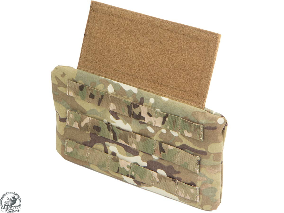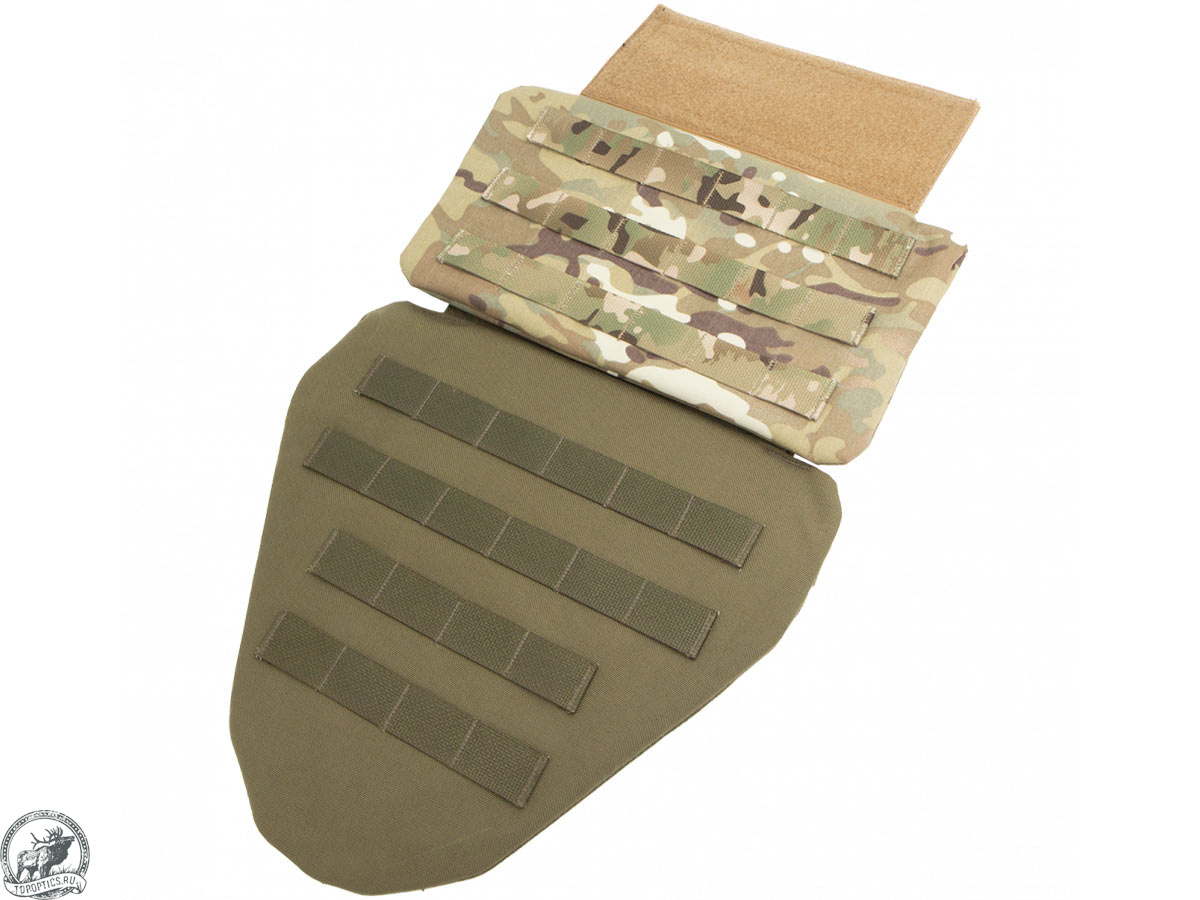 Чехол предназначен для размещения баллистической защиты брюшной полости и крепления на чехлы под бронежилеты. Благодаря трём рядам ячеек-MOLLE, он позволяет установить дополнительное снаряжение. Комплектация включает съёмную деталь-заглушку для удобства фиксации на бронежилетах или защите паха.