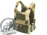 - Высота посадки жилета регулируется за счёт двух велкро панелей на лямках на каждом из плеч.