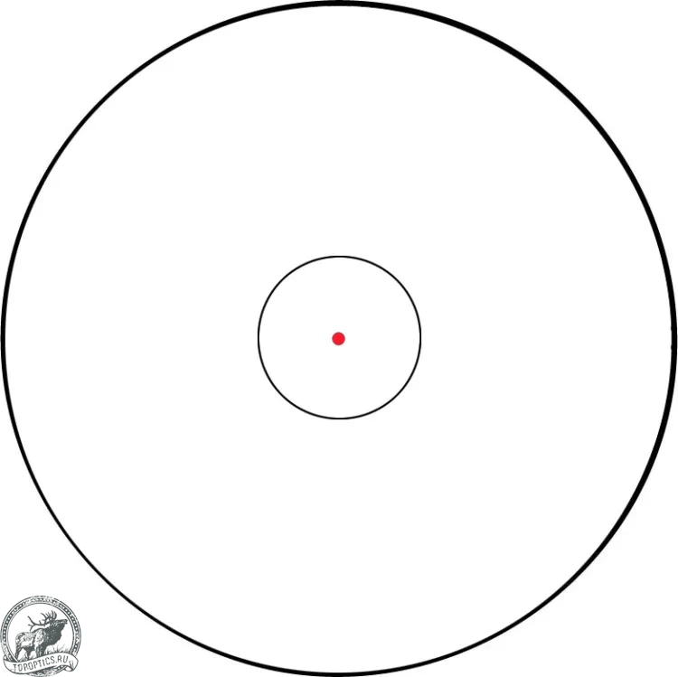 Прицельная метка — «точка в круге». Красная подсветка центральной точки улучшает ее видимость метки в тени и на темном фоне, повышая скорость захвата цели и точность стрельбы.