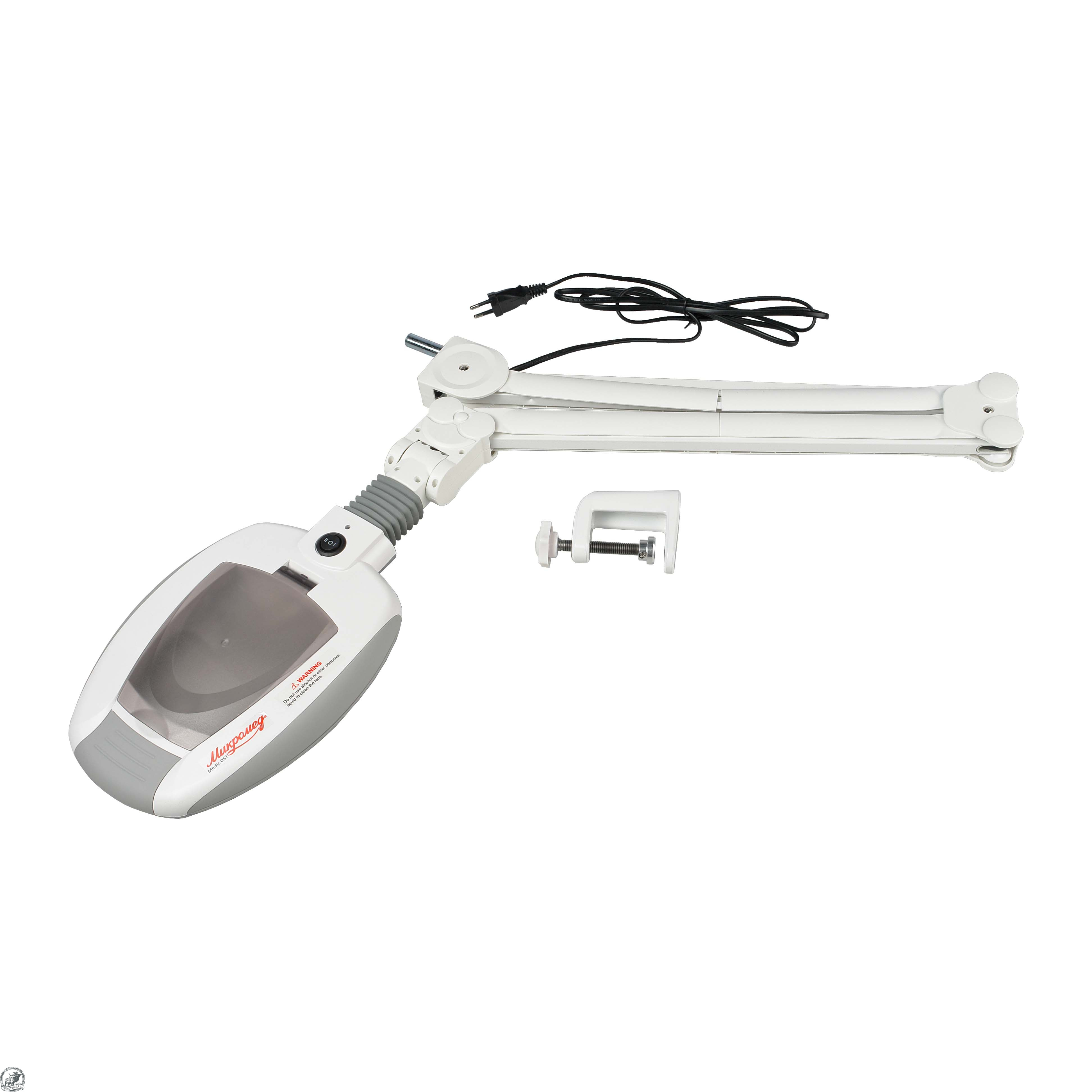 Лупа-лампа Микромед Medic 05T – осветительный оптический прибор, который состоит из кронштейна-пантографа, увеличительной линзы и источника света. В комплекте с Medic 05T также идет металлическая струбцина для крепления лупы-лампы к плоской поверхности толщиной до 4,5 см. Данная комплектация позволит использовать прибор в качестве источника равномерного освещения с возможностью рассматривать мелкие объекты под увеличением.