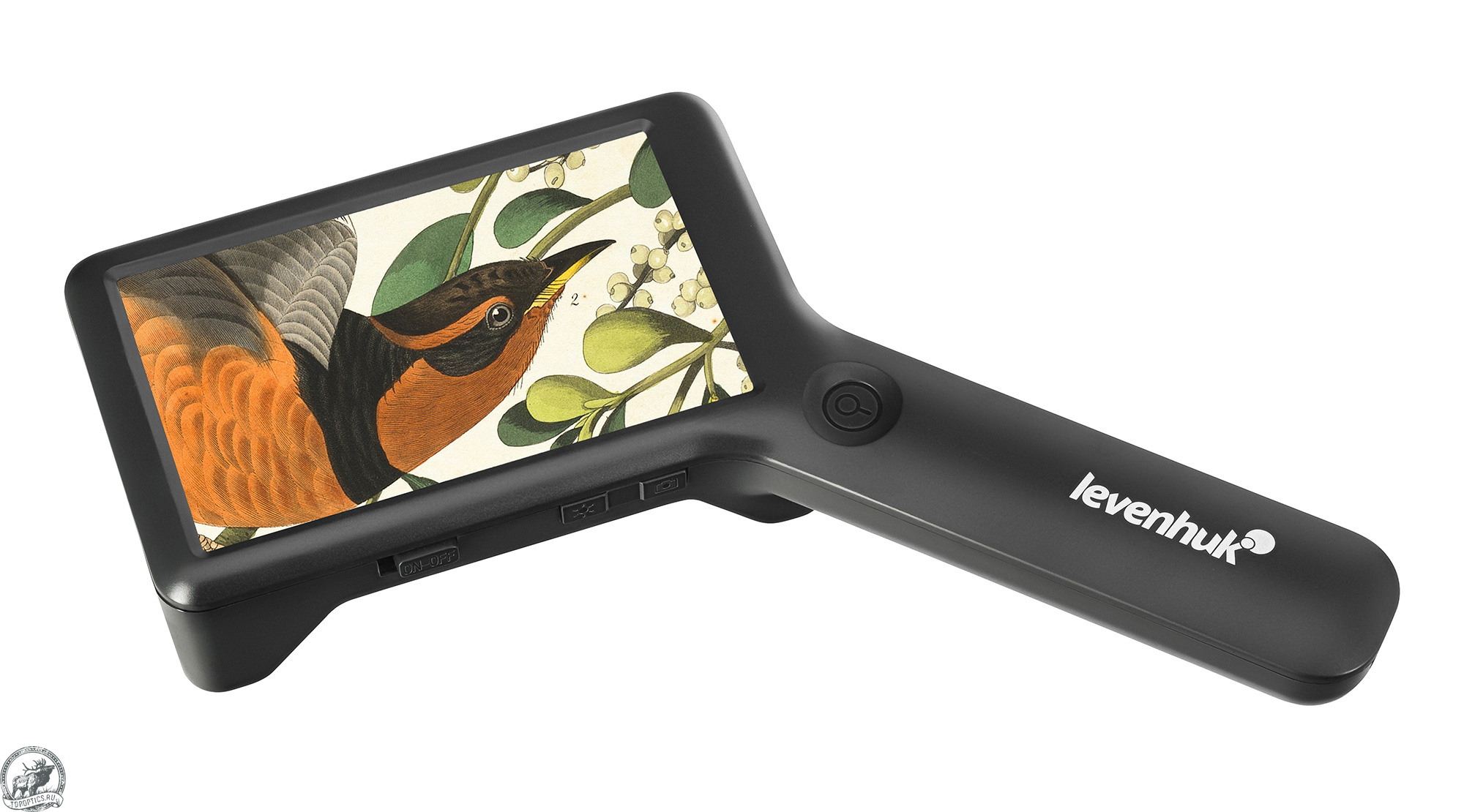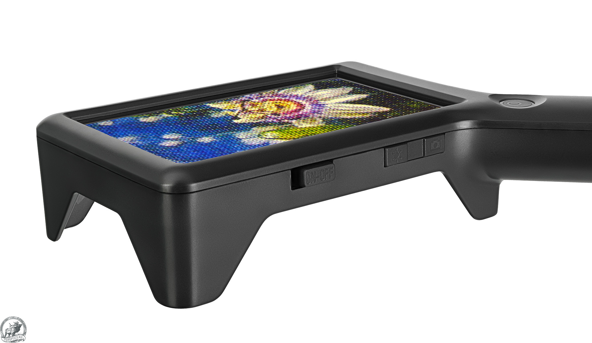 Аккумулятор обеспечивает до 3 часов автономной работы, заряда хватит на длительную сессию использования. Если прибор не активен в течение 10 минут, происходит автоматическое отключение. Корпус лупы из высокопрочного ABS-пластика эффективно защищает электронику от механических повреждений, а эргономичная рукоятка удобно лежит в руке. Кроме того, лупа оснащена опорными ножками и может использоваться как настольное устройство.