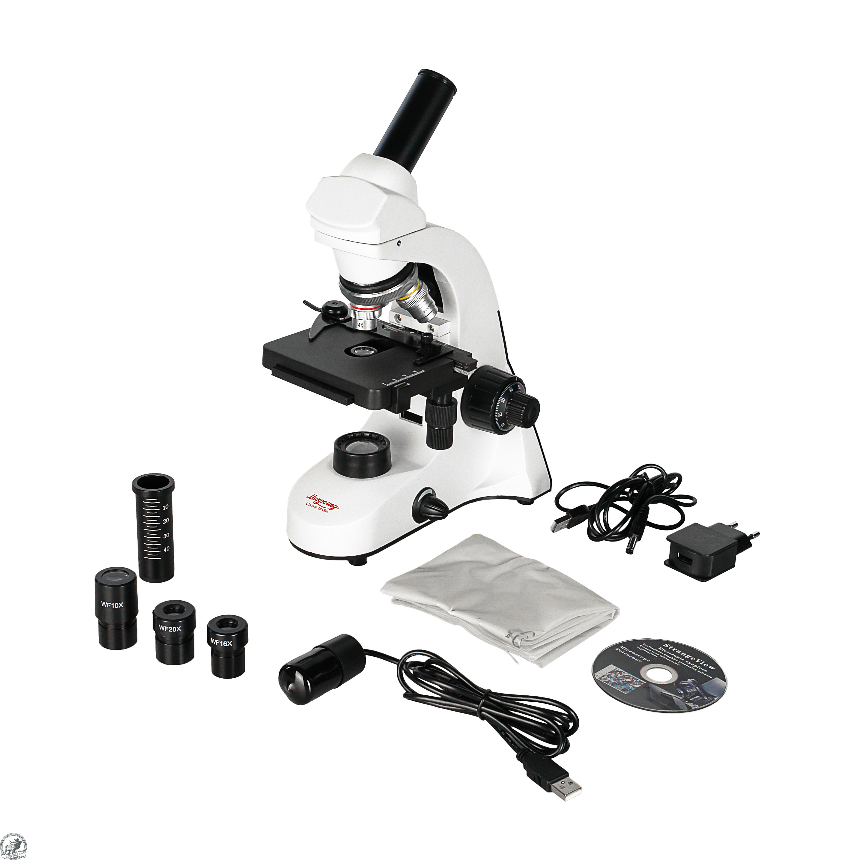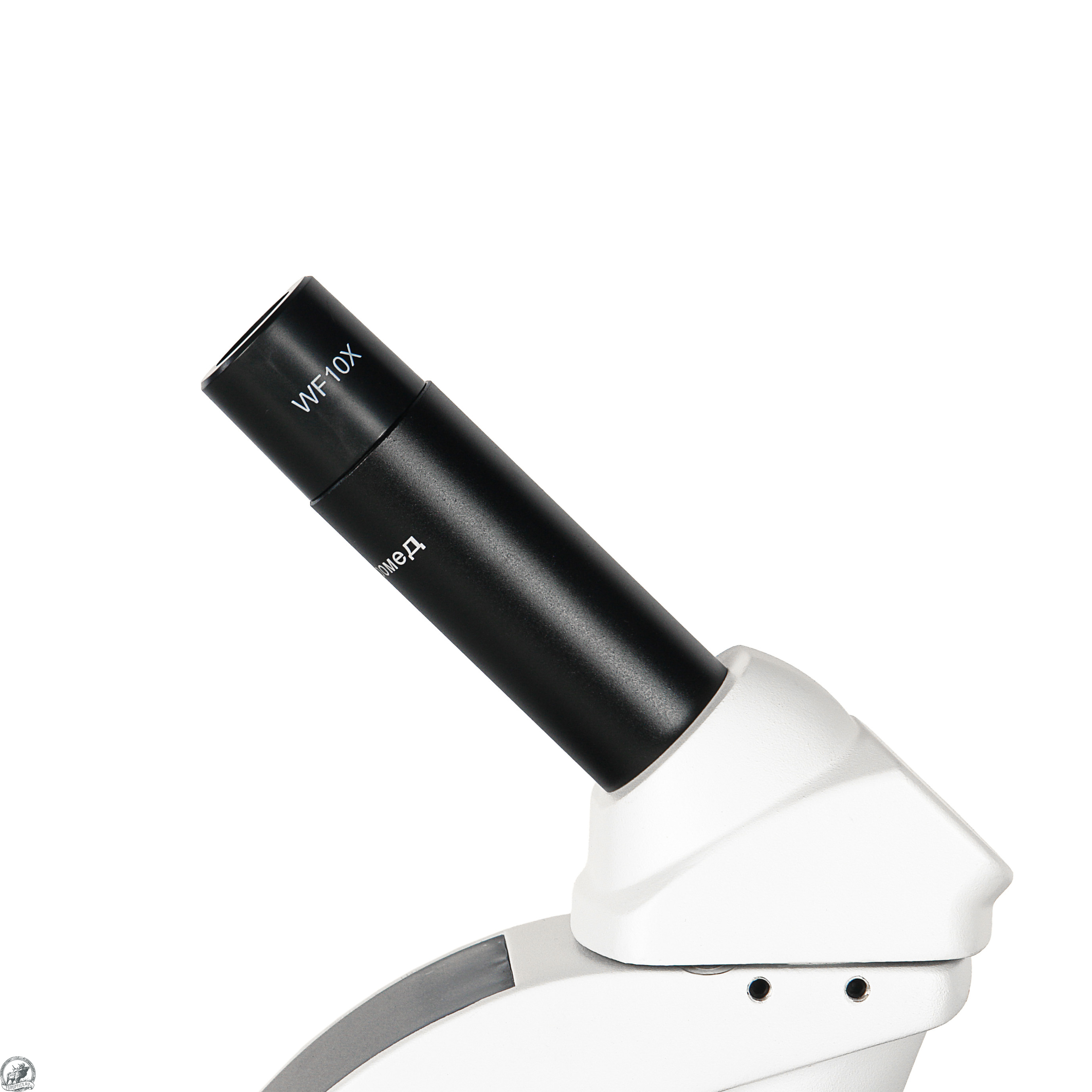 Комплектные окуляры широкого поля WF 10х и WF 20х обеспечивают общее увеличение микроскопа от 40х до 800х. Широко распространенный посадочный диаметр 23.2 мм позволяет использовать с микроскопом окуляры и с другими увеличениями.
