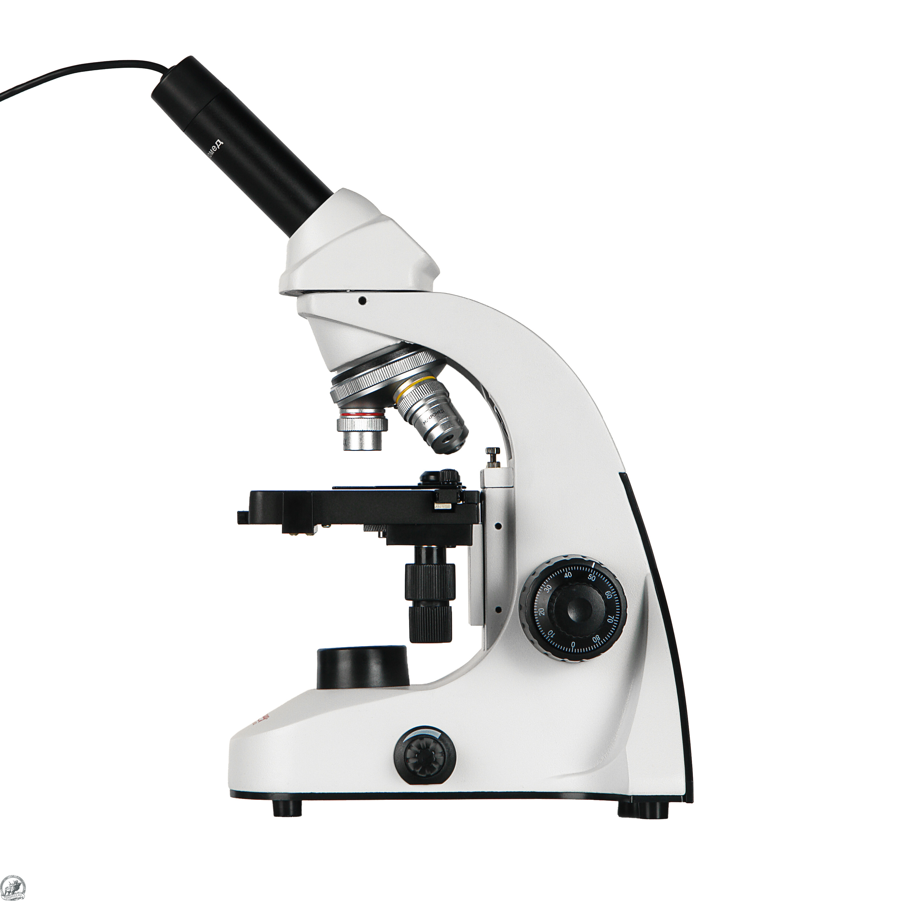 Монокулярный микроскоп Микромед С-11 (вар.2В LED) с 2Мр камерой в комплекте. Увеличение от 40х до 1280х. Предназначен для наблюдения в проходящем и отраженном свете. Объективы с ахроматической коррекцией. Револьверное устройство на 3 объектива. Два осветителя на светодиодах. Тонкая фокусировка. Механический двухкоординатный столик.