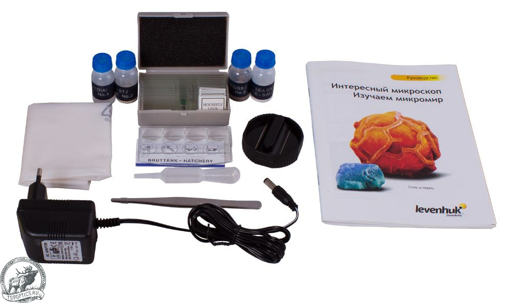 Микроскоп прекрасно подходит для тех, кто только начинает знакомство с микромиром. В комплект входит набор Levenhuk K50, в котором есть все необходимое для проведения интереснейших опытов. Для начала юному исследователю лучше изучить готовые микропрепараты, а затем он сможет создать собственные образцы. Подробное руководство содержит информацию об устройстве микроскопа и описания интересных увлекательных экспериментов.