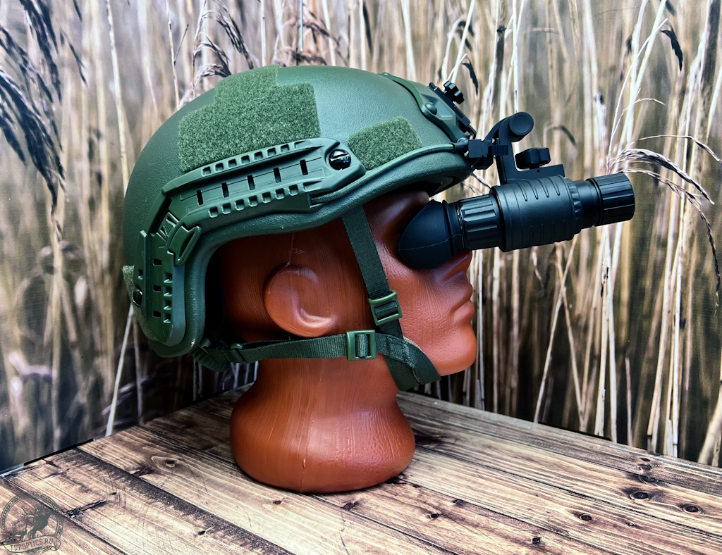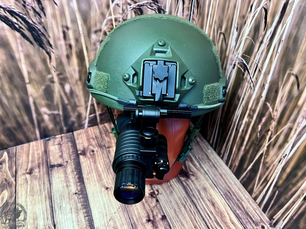 Для выполнения специальных задач в комплект поставки входит крепление монокуляра на шлем или каску.