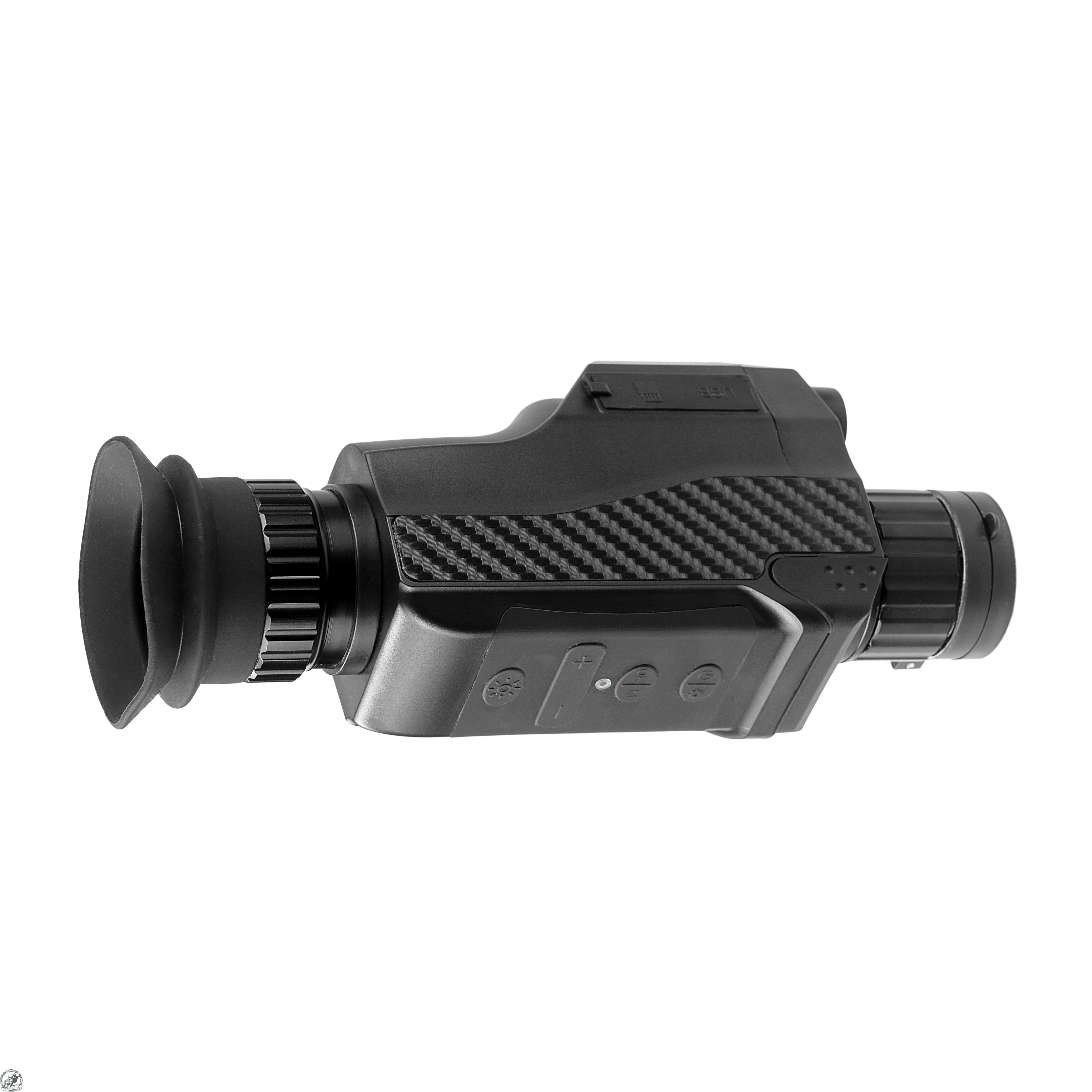 Монокуляр имеет постоянное оптическое увеличение 4х и цифровой зум, позволяющий плавно увеличивать изображение до 8х. Фокусировочное кольцо на объективе и кольцо диоптрийной подстройки на объективе позволяют добиться четкого изображения независимо от увеличения.