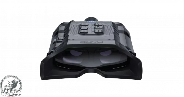 Прибор настраивается под особенности зрения пользователя как оптический бинокль: доступна фокусировка объектива (кольцом на объективе), диоптрийная подстройка (барабанчик над объективом) и регулировка межзрачкового расстояния (колесико под окуляром). Мягкий сдвоенный наглазник блокирует боковую засветку и обеспечивает комфортный просмотр. Управление удобно как левше, так и правше. Большие софт-тач кнопки с индивидуальным «рисунком» чётко различаются на ощупь кончиком указательного пальца и легко нажимаются даже в перчатках.