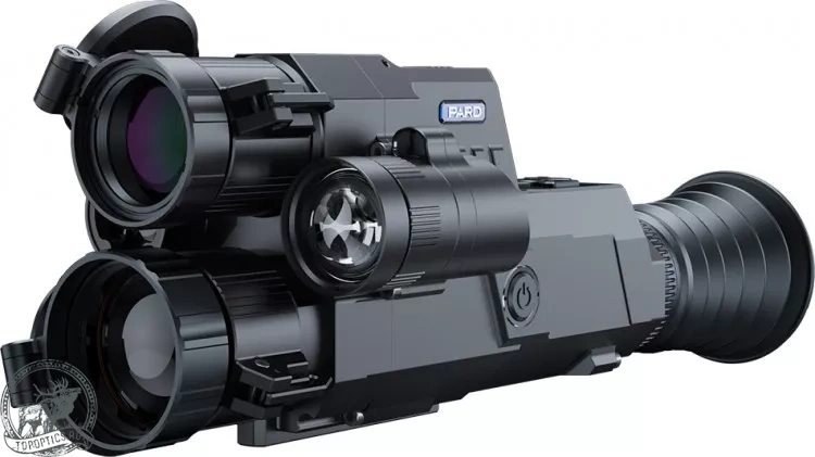 Тепловизионный модуль с объективом F35 мм и матрицей 480x360 (NETD<20 mK). Отличается оптическим увеличением 2,5x и хорошим углом обзора 12,4 м/100 м. Разрешения и чувствительности матрицы достаточно для обнаружения крупного оленя в темноте или в плохую погоду в пределах 1800 м. Алгоритм обработки Pard IREA, 6 палитр и 3 режима сцены обеспечивают чёткую прорисовку тепловых объектов в любых условиях. Благодаря цифровому зуму x2 / x4 / x6 / x8 можно меняет кратность с 2,5x до 20x и охотиться на мелкую дичь.