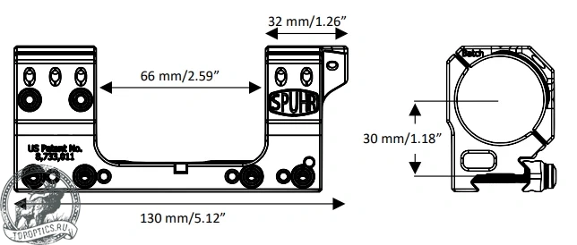 Кронштейн SPUHR обеспечивает надёжную фиксацию и оптимальное положение прицела для точной стрельбы. Высота кронштейна составляет 30 мм от планки до центра колец, что делает его совместимым с различными типами прицелов.