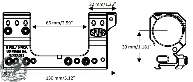 Кронштейн SPUHR обеспечивает надёжную фиксацию и оптимальное положение прицела для точной стрельбы. Высота кронштейна составляет 30 мм от планки до центра колец, что делает его совместимым с различными типами прицелов.