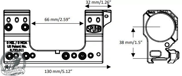 Кронштейн SPUHR обеспечивает надёжную фиксацию и оптимальное положение прицела для точной стрельбы. Высота кронштейна составляет 38 мм от планки до центра колец, что делает его совместимым с различными типами прицелов.