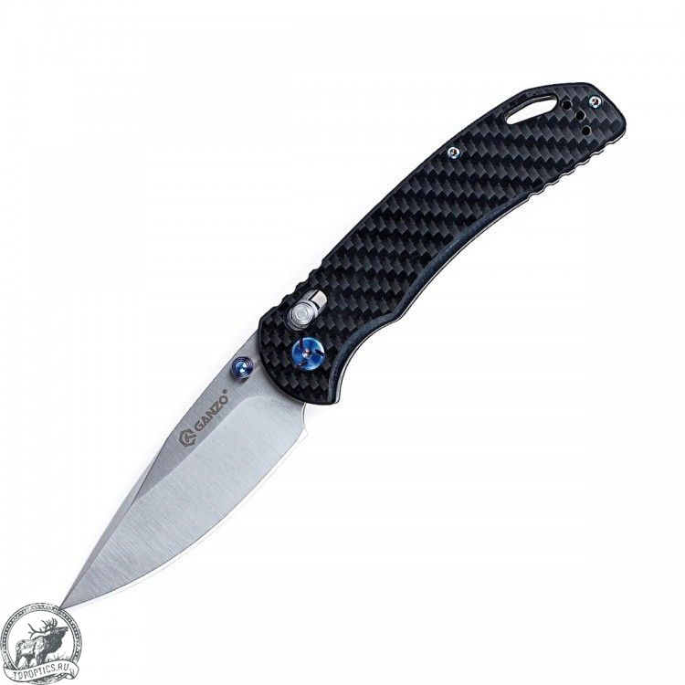 Также, важной деталью ножа Ganzo G7531-CF является замок, который блокирует ход лезвия по оси. Клинок удерживается в полностью открытом или закрытом состоянии. Случайное изменение этого положения исключается и пользователь может быть уверен в своей безопасности во время перевозки ножа, не беспокоиться о возможности его случайного складывания во время работы. Название модели замка, которую производители выбрали для данного ножа, - Axis.