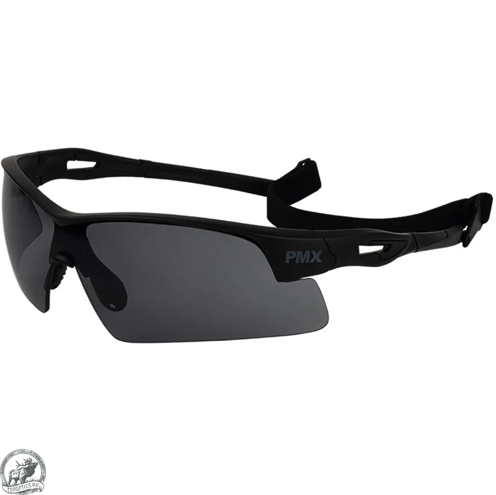 Очки PMX Impel c серыми ударопрочными поликарбонатными линзами светопропускаемостью 23%.