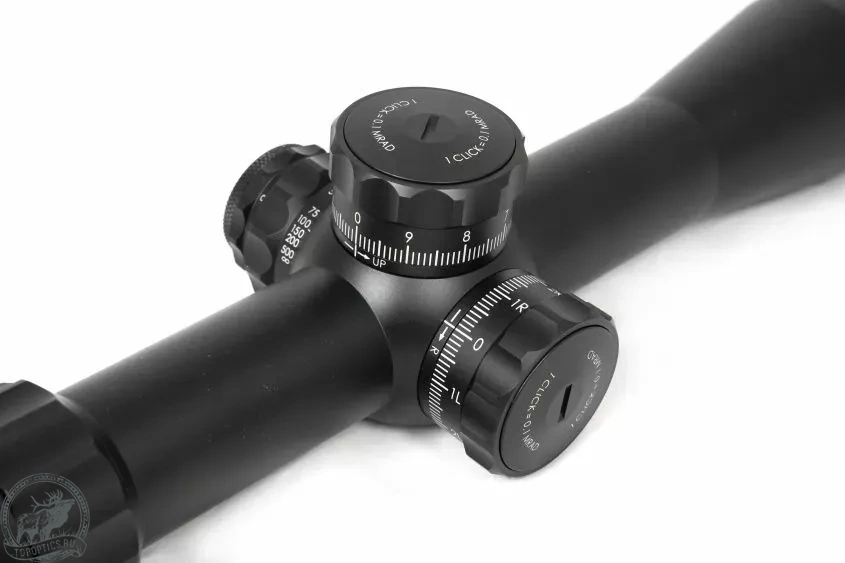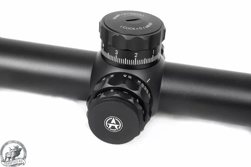 Прицел оснащен барабанами тактического типа с разметкой в MRAD для точной корректировки прицельной сетки. Доступна функция удобного обнуления. Шаг выверки — 0,1 MRAD, с общим запасом хода по вертикали и горизонту 35 MRAD. Для устранения параллакса используется боковой барабан с диапазоном настроек от 10 ярдов до бесконечности.