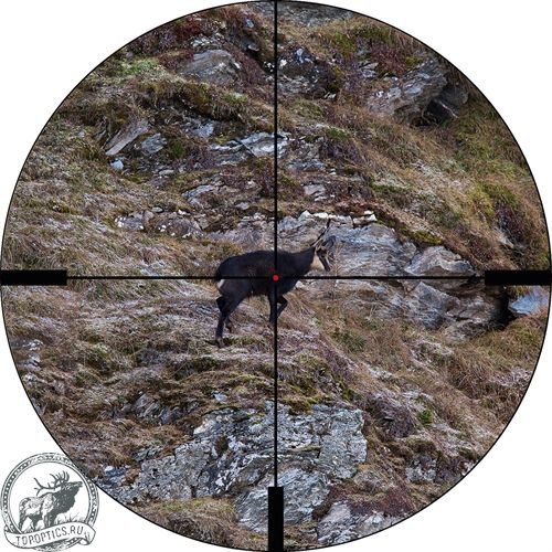Благодаря швейцарской инновационной фазовой дифракционной технологии перекрестие прицельной сетки дает правильный размер и соотношение даже при большой кратности. Точка с подсветкой, которая регулируется в соответствии с условиями видимости, позволяет комфортно охотиться при любых условиях. Дополнительным достоинством прицелов с первой фокальной плоскостью является то, что охотники легко могут рассчитывать расстояние.