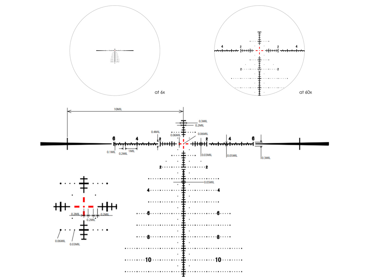 Прицел March Genesis 6-60x56, прицельная сетка FML-MT, первая фокальная плоскость, на Picatinny, Super ED, цена клика 0,05MIL, подсветка