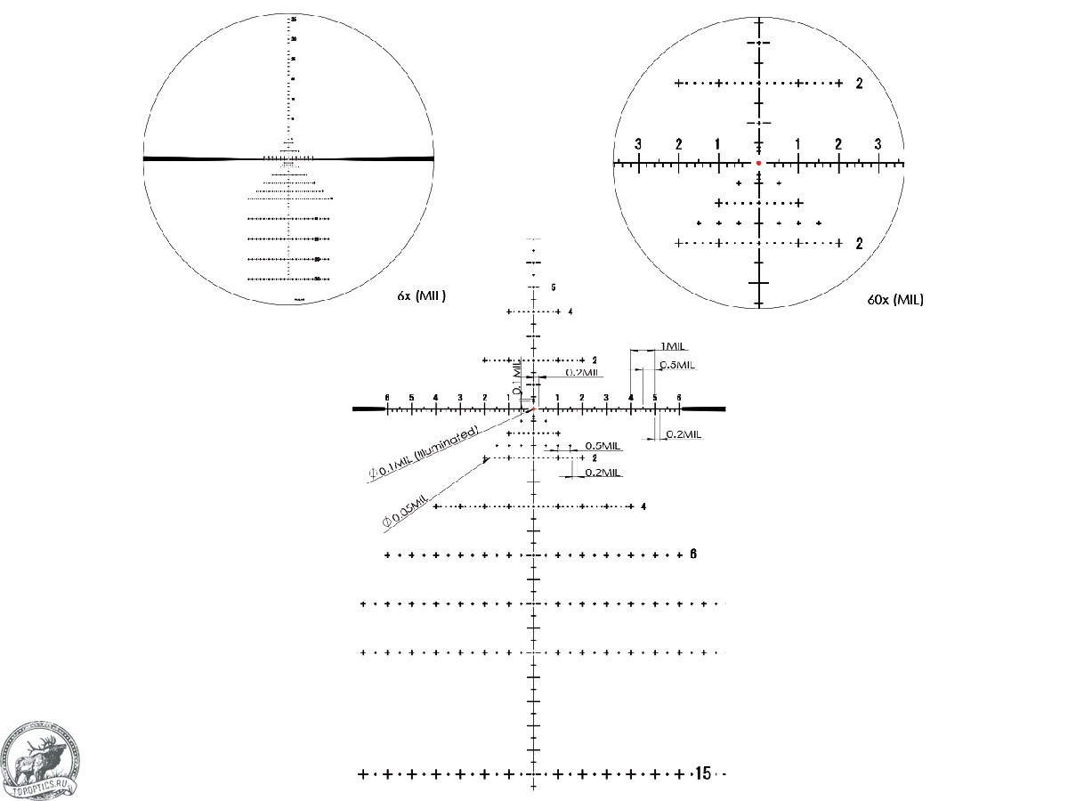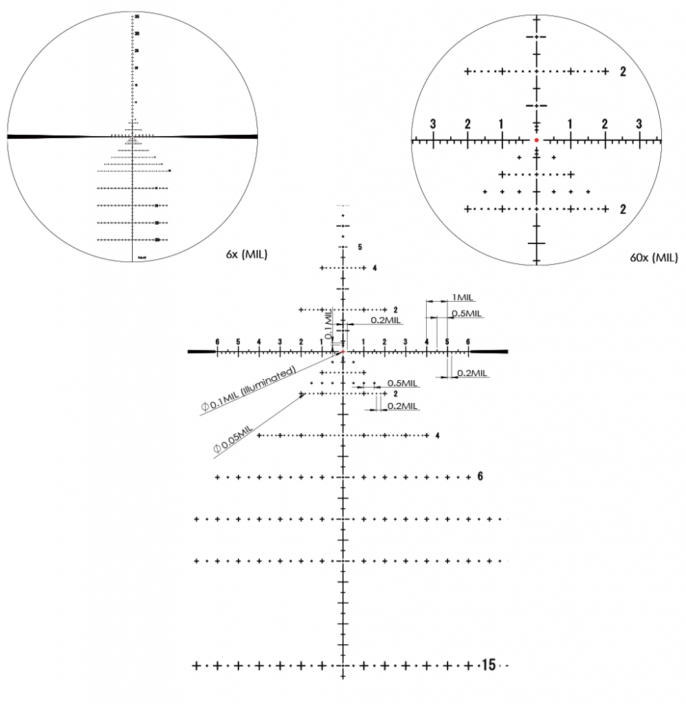 | Расположение прицельной сетки | 1-ая фокальная плоскость Регулировка по высоте 400 МОА Регулировка по горизонтали 150 МОА |