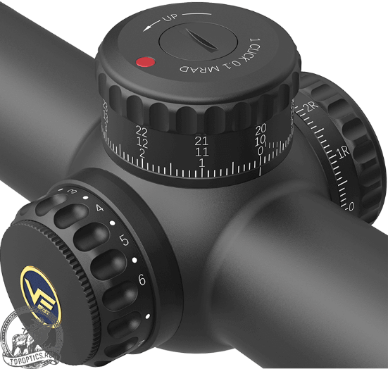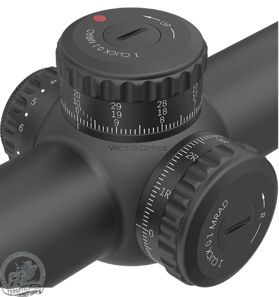 Регулировка прицельной точки осуществляется при помощи увеличенных барабанчиков, отличающихся хорошо слышимым и ощущаемым тактильно кликом. Шаг последнего составляет 1/10 MIL, что в сочетании с диапазоном поправок в 51 MIL по обеим осям гарантирует возможность подстройки прибора под любые условия стрельбы. Функция Zero-Stop позволяет выполнять пристрелку с собственной "нулевой" точкой, а блокировка турелей Turret-Lock исключает случайное смещение положения марки при переходах по зарослям.