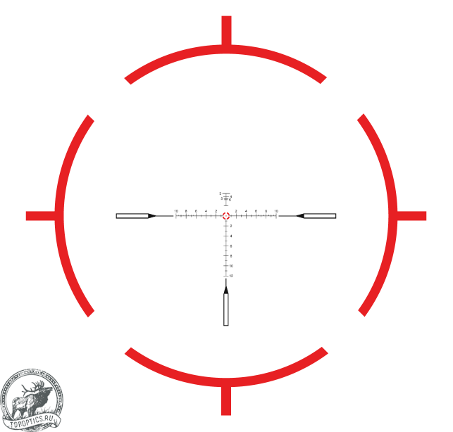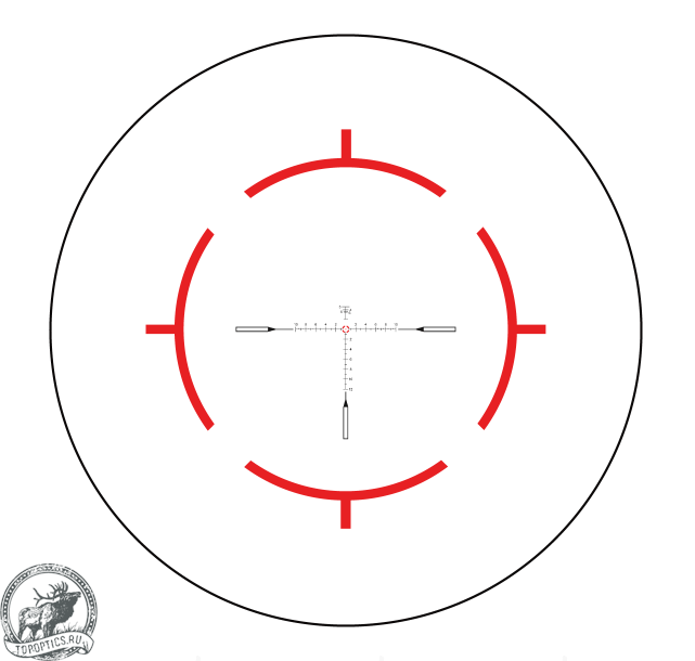 В прицеле используется сетка типа VET-RAR. Сочетая в себе Т-образную шкалу с делениями ввода поправок и подсвечиваемую марку типа перекрестье с кругом, она обеспечивает быструю стрельбу накоротке и точное прицеливание на дальних дистанциях. 11 уровней подсветки позволяют подбирать подходящий режим под любые особенности естественного освещения и фон конкретной локации.