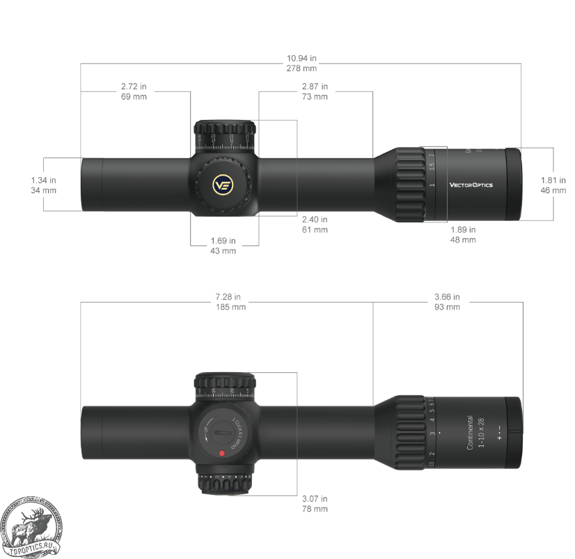 - Оптический прицел Vector Optics Continental x10 1-10x28 ED FFP VET-RAR