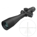 Прицельная сетка MРR-V10 нанесена методом травления стекла и оснащена подсветкой центральной точки. Сетка находится во 2 фокальной плоски, что означает сохранение ее постоянного размера при смене кратности. Подсветка красного цвета имеет 6 степеней яркости, которые легко переключать с помощью колеса, расположенного на боковой части корпуса. Совокупность этих факторов делают прицельную сетку удобной в использование, позволяя адаптировать ее под условия окружающей освещенности. Информативная разметка по вертикали и горизонтали с характерной “елочкой” позволяет оперативно вносить корректировки прямо во время стрельбы.