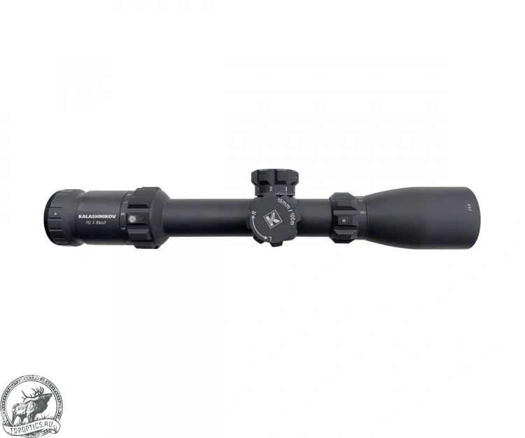 Конструкция. Параметры прибора заложены под карабин ТИГР. Прицел выполнен в цельном 30-мм корпусе с чёрным матовым анодированием. Рассчитан на стрельбу патронами калибра 7,62х54R, .308 Win, .30-06 и 338 LM включительно. Механика без люфта, всё вращается с оптимальным усилием. Справа на окуляре — надпись Kalashnikov, на торце маховичка подсветки — логотип «К».