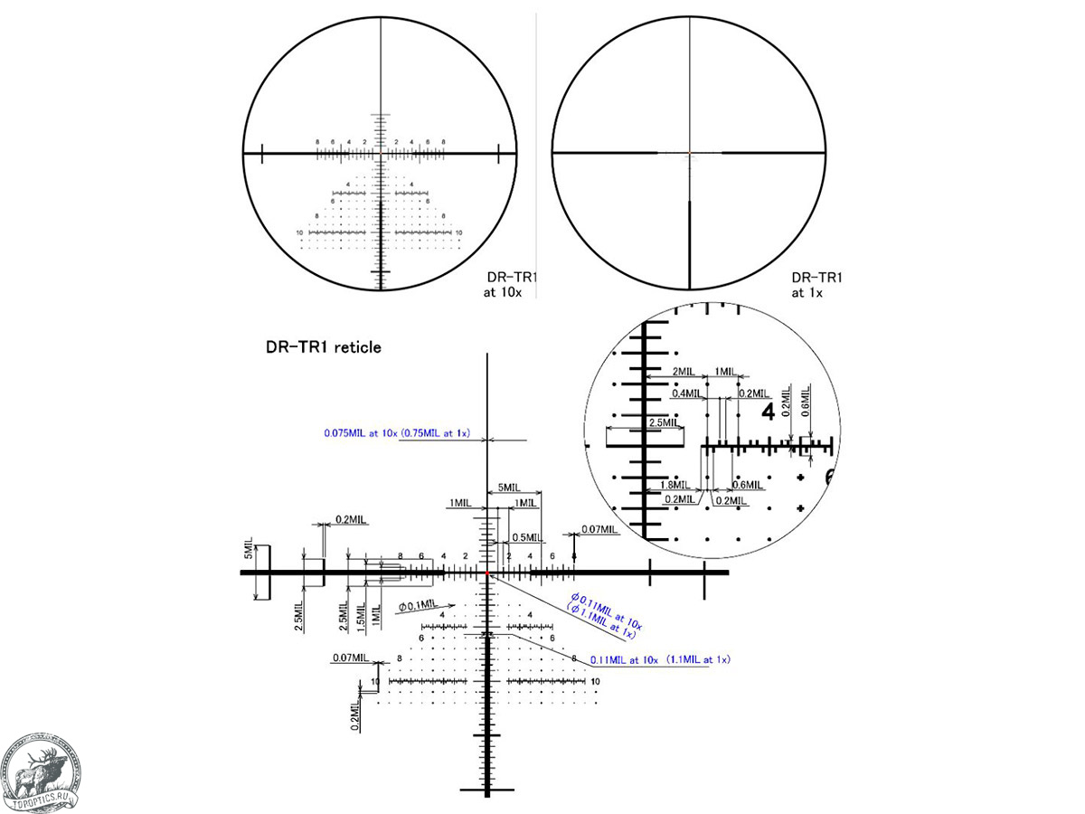 Прицел March-F 1-10x24 Shorty DR-TR1 FFP+SFP 30мм является одним из самых легких и коротких прицелов с 10-ти кратным увеличением в мире. Новейшая двойная прицельная сетка DR-TR1 расположена одновременно в первой (FFP) и второй (SFP) фокальных плоскостях и обладает всеми их преимуществами. Она отличается удобством прицельной сетки FFP, которая увеличивается и уменьшается в зависимости от выбранной кратности, а также удобством прицельной сетки SFP с постоянной толщиной (для глаза, а не для масштаба) линий при изменении кратности. Размещение точечной подсветки с шестью уровнями яркости во второй фокальной плоскости гарантирует, что светящуюся точку можно использовать во всём диапазоне увеличения и при различных условиях освещения.