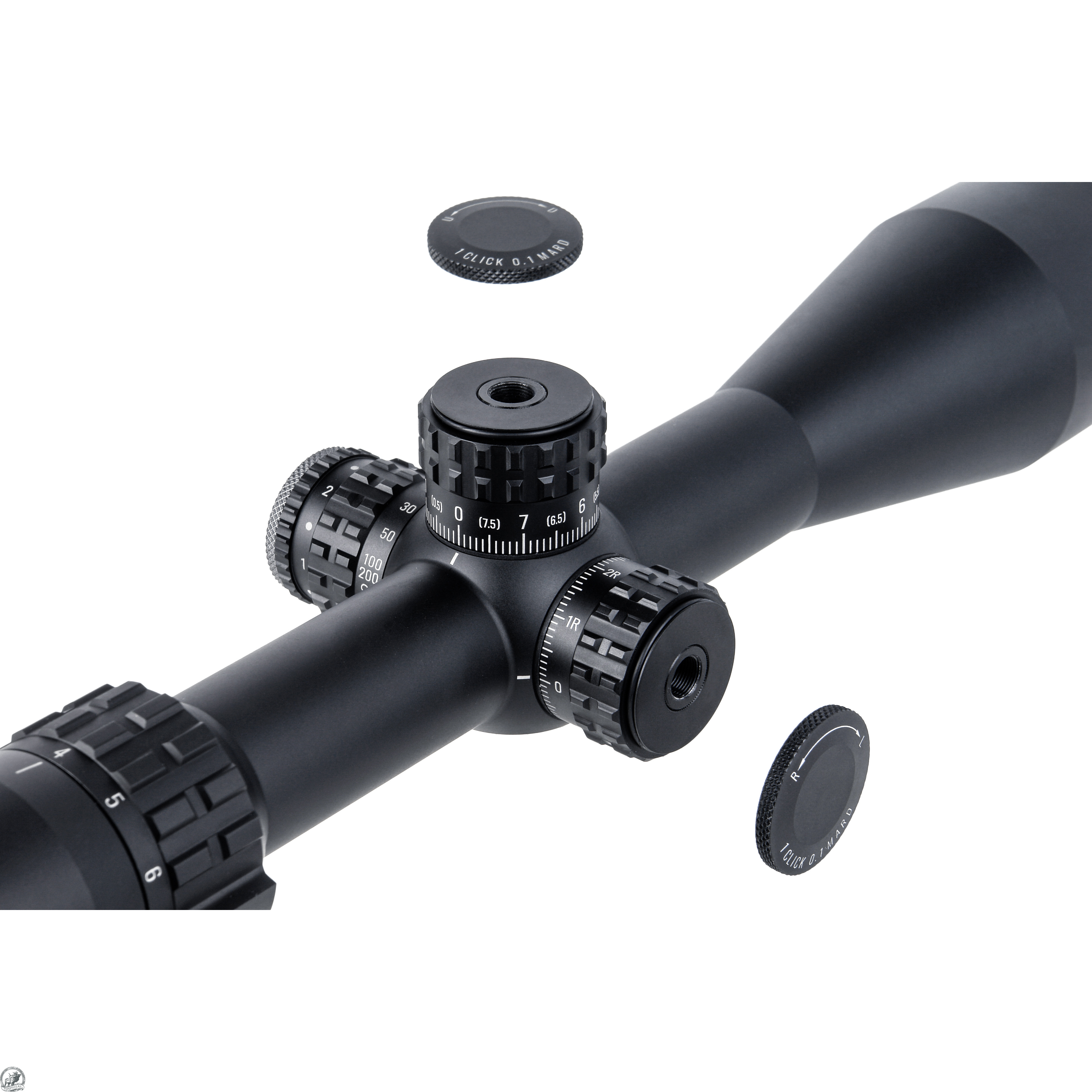 Механизмы ввода поправок оснащены системой блокировки Self Lock, предотвращающей случайное смещение настроек. Для введения поправок крышку барабана надо вытянуть до упора вверх по оси вращения. Цена деления механизмов составляет 0.1 MRAD, что предоставляет высокую точность внесения корректировок.