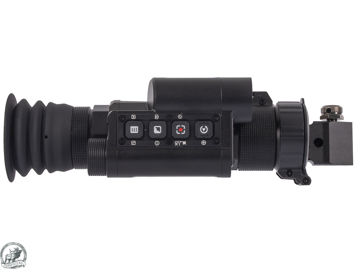 Сенсор с разрешением 384x288 пикселей и объектив 35мм выводят чёткую картинку в любое время суток на OLED дисплей с разрешением 1024x768. Аккумулятор 18650 ёмкостью 3200 мАч обеспечивает до 5 часов автономной работы.