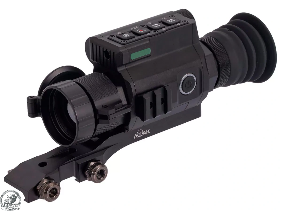 ATAK ET23-45 PRO — высококачественный тепловизионный прицел. Сенсор с разрешением 384x288 пикселей и объектив 45мм выводят чёткую картинку в любое время суток на OLED дисплей с разрешением 1024x768. Аккумулятор 18650 ёмкостью 3200 мАч обеспечивает до 5 часов автономной работы.