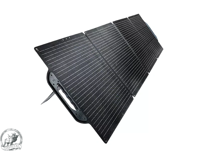 Благодаря компактной складной конструкции и предусмотренным транспортировочным ручкам, солнечная панель отличается удобством транспортировки и занимает минимум места во время хранения. Внешняя сторона аксессуара выполнена из практичного ЭВА материала, а для размещения панели под углом предусмотрены специальные ножки.
