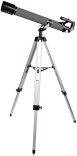 Все линзы оптической схемы сделаны из стекла и дополнены антибликовым покрытием, поэтому телескоп строит ясное и четкое изображение без искажений. Труба установлена на вилочную азимутальную монтировку, на вертикальной оси которой есть микровинт. Он используется для более удобного и точного наведения на объекты. Тренога сделана из алюминия и снабжена полочкой для аксессуаров. При необходимости высоту ножек треноги можно регулировать.