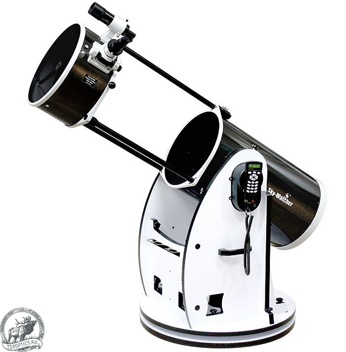 Труба устанавливается на азимутальную монтировку Добсона с системой автонаведения SynScan AZ. В базе данных содержатся координаты 42 900 астрономических объектов. Пользователю достаточно выбрать любой из них, нажать на кнопку GoTo на пульте управления, и телескоп автоматически наведется на объект.