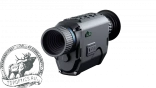Лазерный дальномер помогает узнать точное расстояние до объекта охоты в пределах 1000 м, эффективно работает в паре как с дневным, так и с ночным охотничьим прицелом и существенно упрощает расчёты поправки как на бумаге, так и в калькуляторе. Управляется одной кнопкой, работает в сканирующем режиме, пока не выключишь, — результат замера непрерывно выводится в центре экрана рядом с меткой.