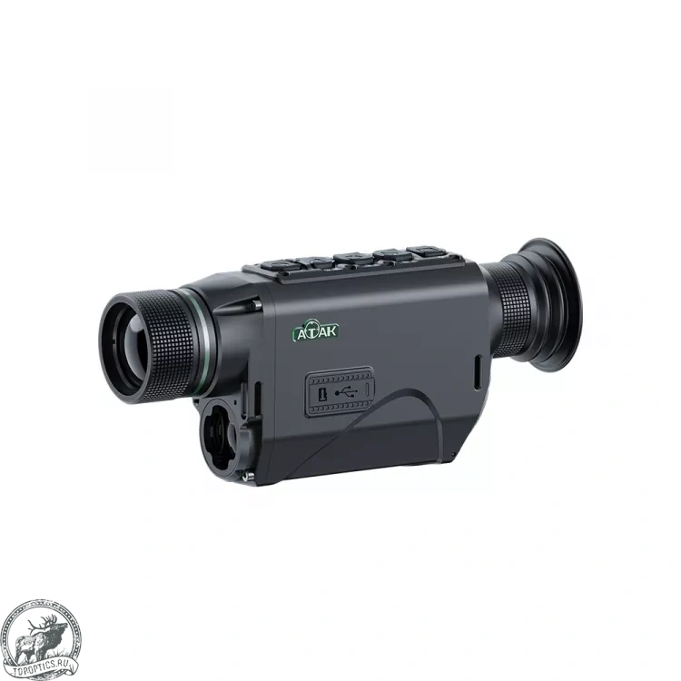 Тепловизор ATAK HT16 LRF является цифровой камерой с микроболометром на базе оксида ванадия, регистрирующим излучение в тепловой части спектра 8-14 мкм, и выполненной в виде монокуляра. Предназначен для наблюдений и съёмки в любое время суток в указанном спектре. Способен записывать фото и видео со звуком на съёмную карту памяти до 128 ГБ и передавать видеосигнал по Wi-Fi, HDMI и USB-кабелю.