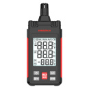 Измерение температуры доступно в диапазоне от –20 до +60 °C. Также можно настроить отображение показаний в °F. Влажность измеряется в процентах, от 0 до 100, с разрешением в 0,1%. Также прибор определяет точку росы. Термогигрометр имеет функцию запоминания предельных значений и удержания показаний.