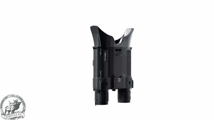 Прибор настраивается под пользователя как классический бинокль: регулируется межзрачковое расстояние (колёсико под корпусом), выполняется диоптрийная подстройка от –5 до +3 дптр (ручка на передней грани) и фокусировка объектива. Сдвоенный окуляр с силиконовым анатомическим наглазником создаёт максимальный комфорт: плотное прилегание к лицу, отсутствие давления на переносицу и эффективная блокировка бокового света.