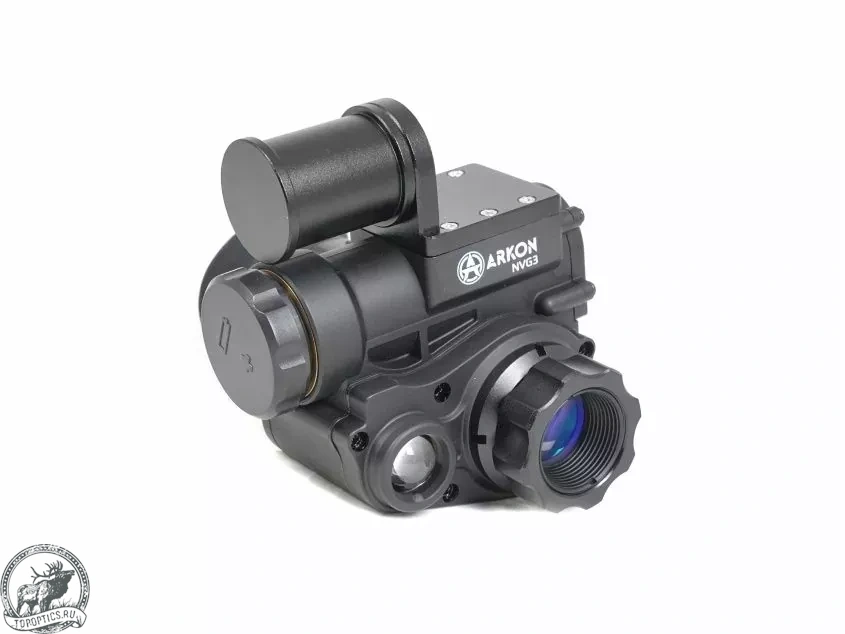 Монокуляр ночного видения Arkon NVG3 оснащен интегрированным инфракрасным осветителем, работающим на длинах волн 850 нм, соответствующей границе воспринимаемого человеческим глазом диапазона. При активации заметно приглушенное малиновое свечение, которое уже не различимо с расстояния от 50 метров. ИК-осветитель закрыт специальной рассеивающей линзой, снижающей интенсивность подсветки и позволяющей комфортно выполнять задачи на ближней дистанции, например, рассматривать карты, документы и другие мелкие детали.