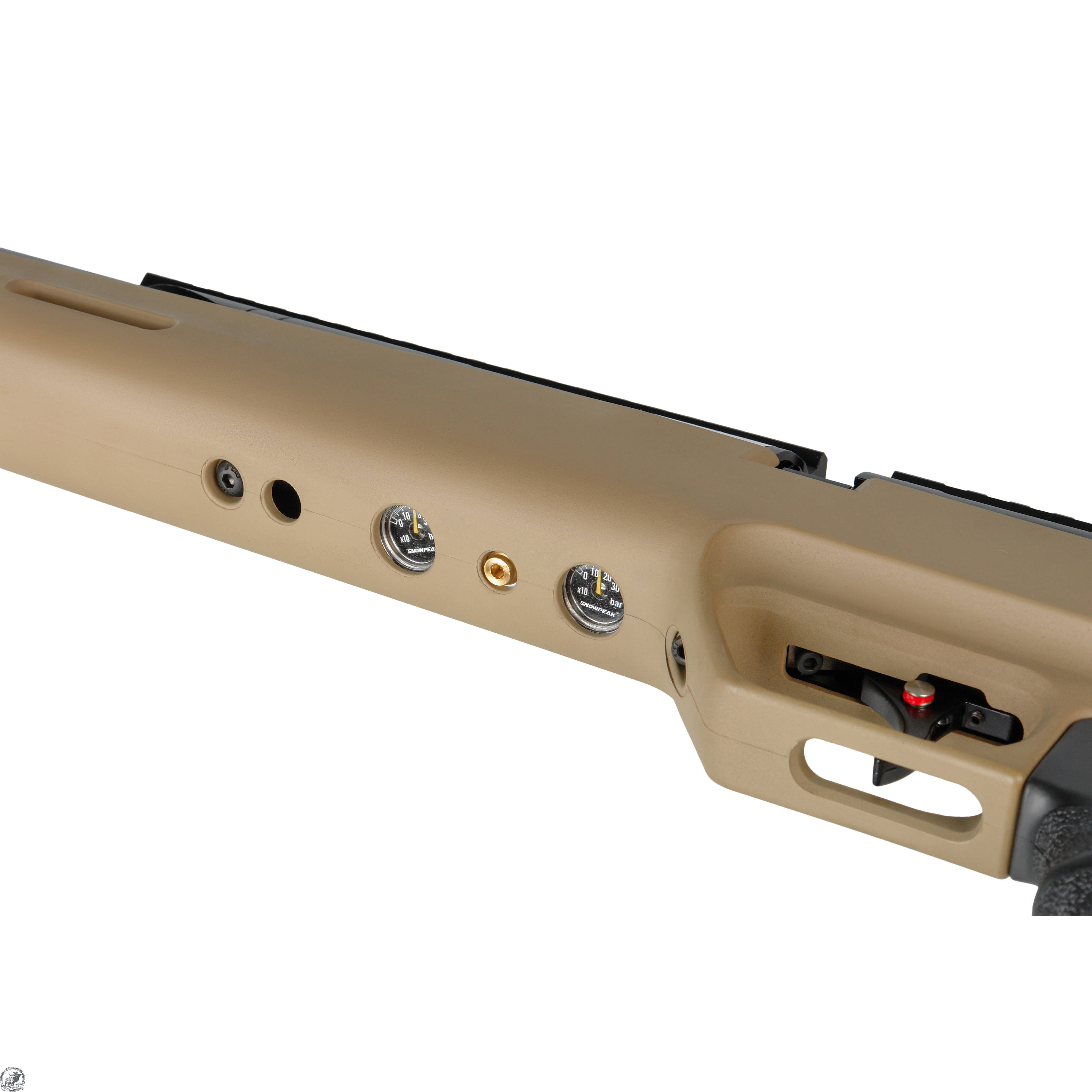 Для использования винтовки необходима предварительная накачка резервуара воздухом с помощью ручного насоса или баллона высокого давления. Для контроля давления в резервуаре предусмотрен манометр рядом с заправочным портом.